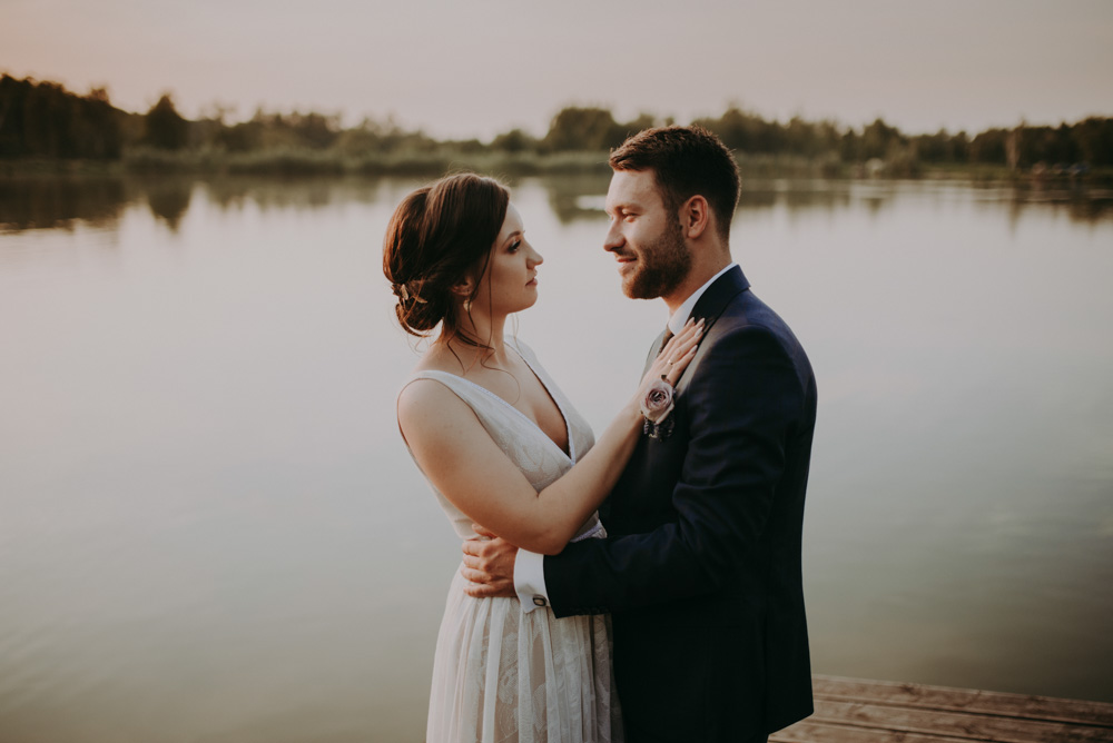 Myśląc fotografie ślubne w stylu boho od razu wyobrażamy sobie lekkość, zwiewność, woń pięknych kwiatów i pastelowe odcienie. Piękne koronki i zapachy, zieleń, szyk i elegancję. I dokładnie taki był dzień ślubu Patrycji i Krzysztofa, którzy na ślubnym kobiercu stanęli w Grobku w Brodach, wesele odbyło się w pięknie umiejscowionej sali nad jeziorem w Graboszycach, a na zdjęciach plenerowych uchwycony został malowniczy zachód słońca w Gródku nad Dunajcem. Dwa dni pełne słońca, wody i drzew, delikatnej muzyki i żywiołowej zabawy.