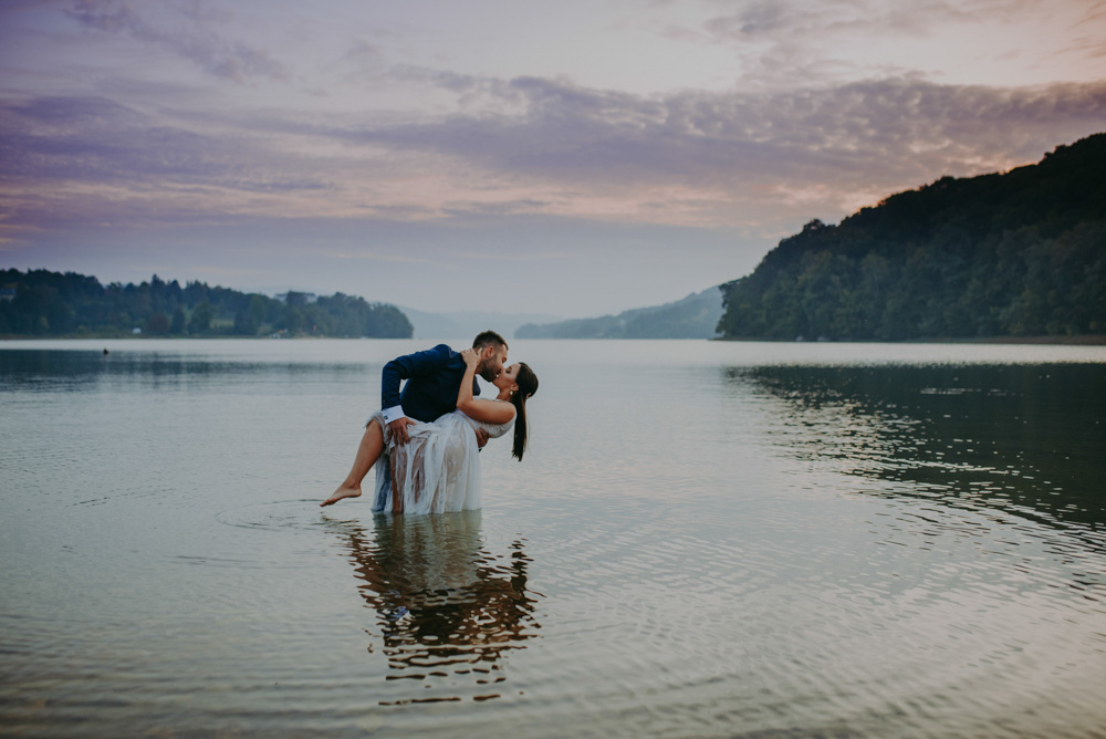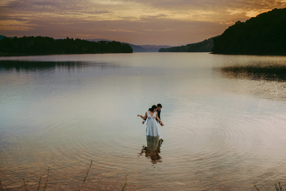 Chociaż Gródek nad Dunajcem to miejscowość położona niedaleko Krakowa, była to dla mnie pierwsza ślubna sesja plenerowa wykonana w tej okolicy. Lubię nowe miejsca, ponieważ pozwalają mi uruchomić kreatywność i wyobraźnię. To w połączeniu z charyzmą Patrycji i Krzysztofa, ich otwartością, zaowocowało niesamowicie ciekawymi ujęciami w lesie, na polach i w jeziorze. Zapraszam